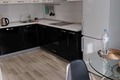 В квартире очень чисто. Просто идеально. Интересный современный интерьер. Удобный диван. Напротив большой телевизор. В ванной огромная ванна со шторкой. Напор воды хороший. Большая кухня, стол стеклянный круглый. Есть моющее средство для посуды, губка, салфетка. В шкафчике были бумажные салфетки и соль. Рядом с домом есть продуктовые магазины. Машину оставили прямо у подъезда, что было очень удобно. Двор закрытый. Во дворе на клумбах - красивые розы цветут. Если вы на машине, то до центрального рынка или до набережной около 10 минут. Это мы узнали, когда вызвали такси. А на своей машине плутали, так как навигатор и GPS не работали.