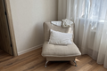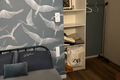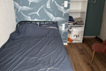 - спальня разбита на 2 зоны, которые можно изолироть друг от друга шторой  : зона с кроватью и шкафом и комната для работы/отдыха/уединения.