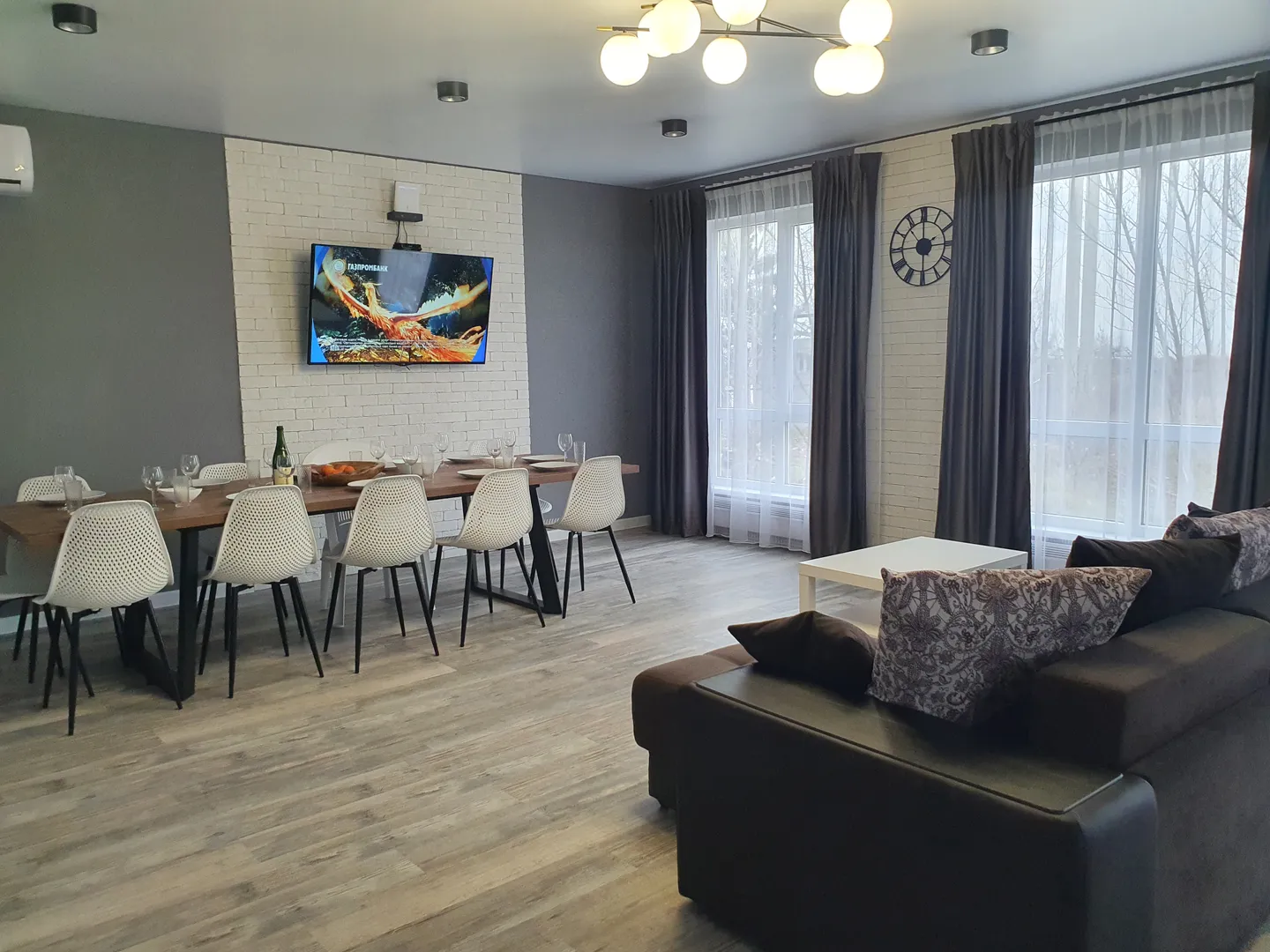 Частный дом дизайнерский евроремонт и кухня-столовая.